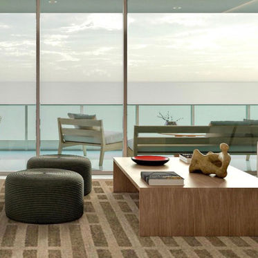 A waterfront apartment in Brickell, Jade balances minimalism and character. Clean lines, marble floors, and a neutral palette allow the sweeping bay views to take protagonism, while natural woods and industrial touches add warmth and texture. Subtle, elegant, and functional, the design reflects a quiet sophistication anchored by the surrounding seascape.